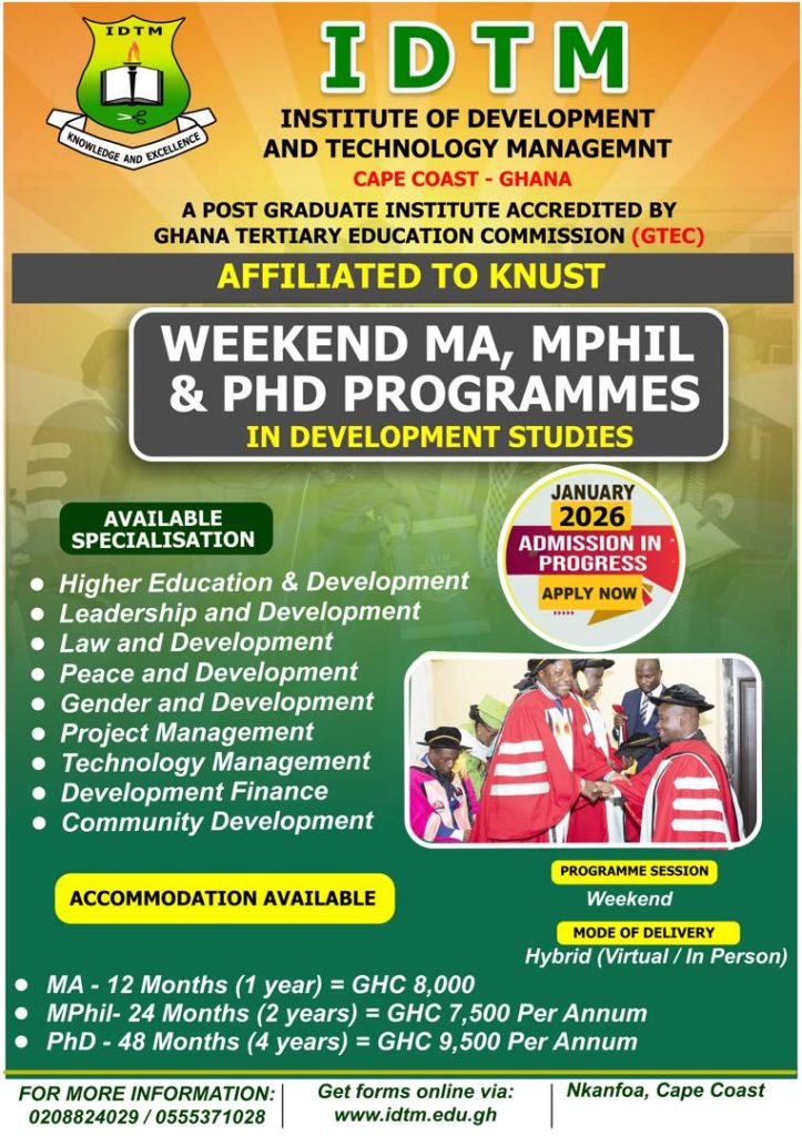 1. IDTM Offices, Nkanfoa, off Edukrom Road, Cape Coast. (0555371028)
