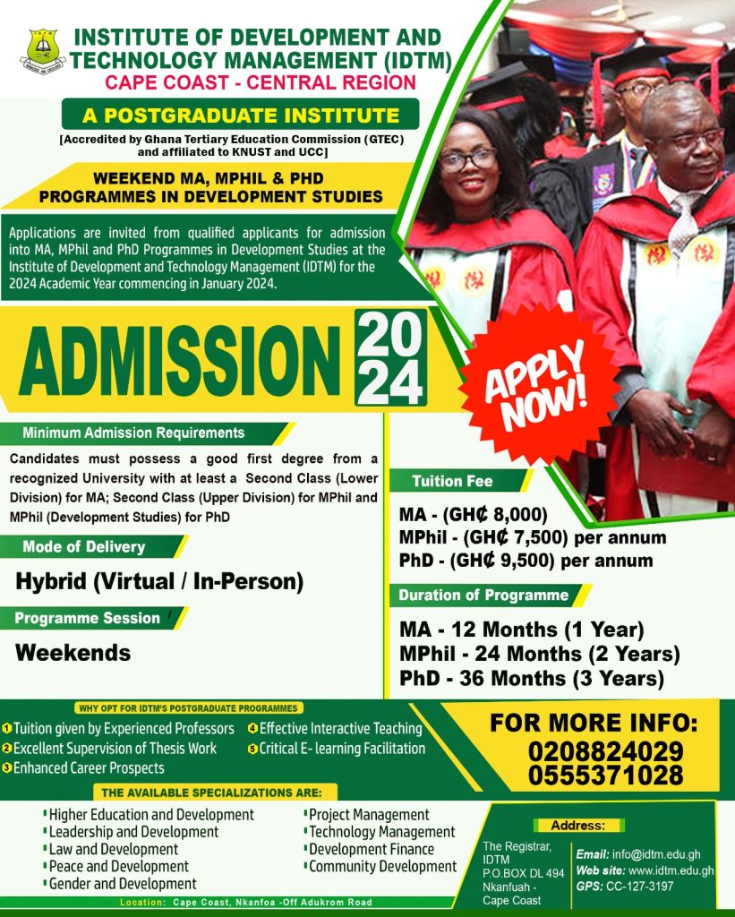 The Master of Arts (Development Studies) programme is a professional development programme. It seeks to train development practitioners who have the ability to conduct independent scientific research to solve development problems at the local, national and international levels for the benefit of society.